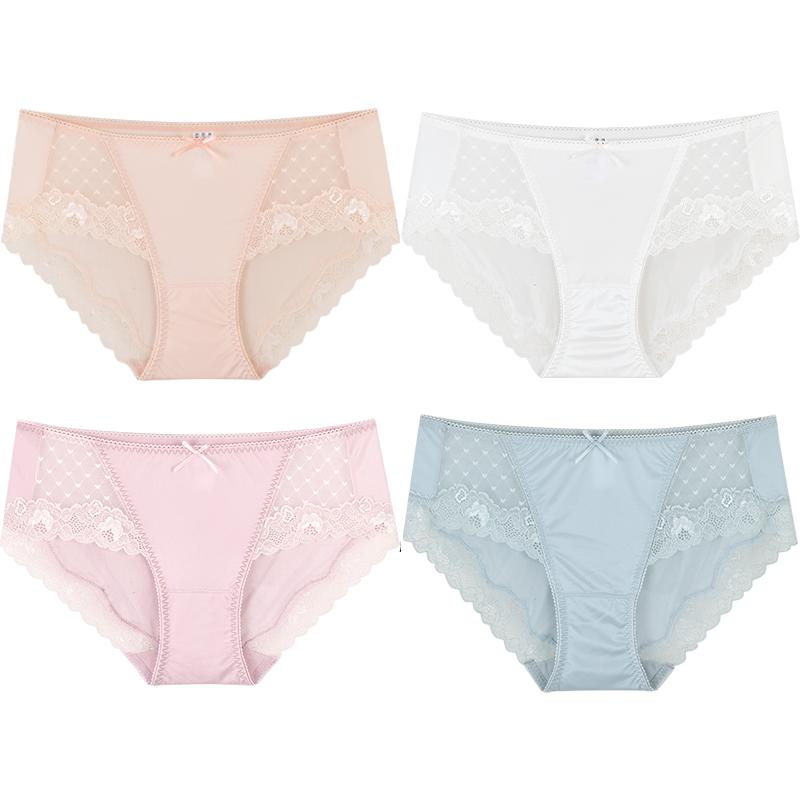 3条装MYBODY商场同款白月光内裤性感蕾丝桑蚕丝抑菌三角裤短裤