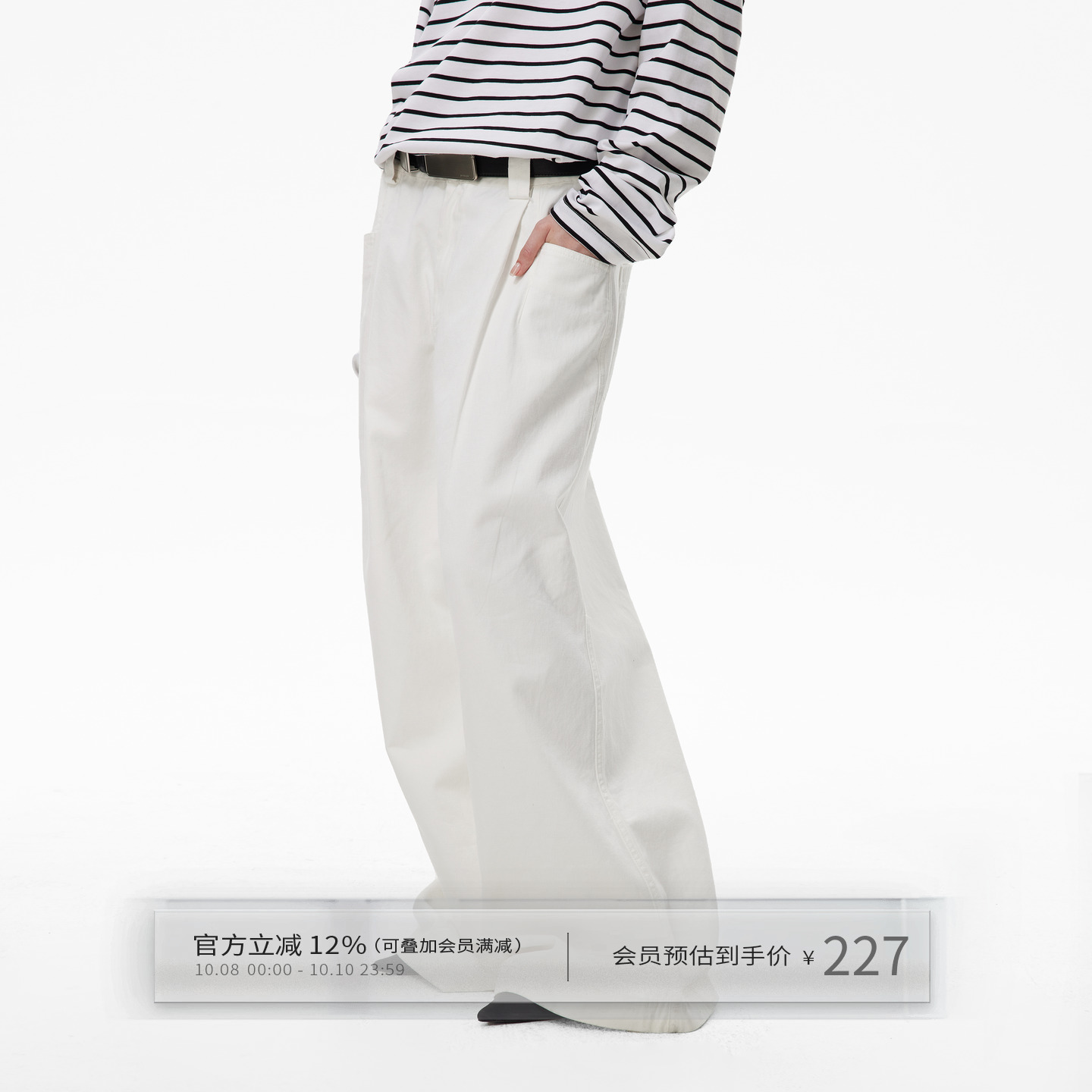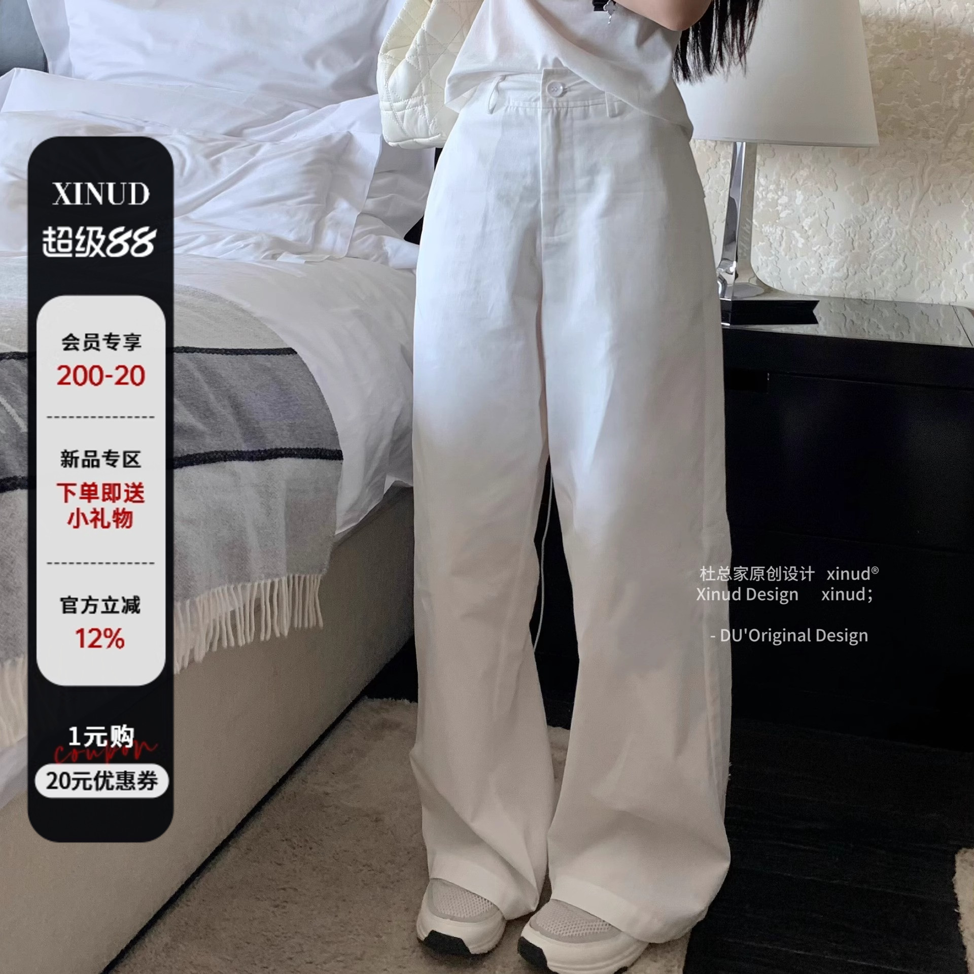 杜总家 慢调时髦小白裤*百搭纯欲工装宽松休闲舒适女直筒阔腿长裤