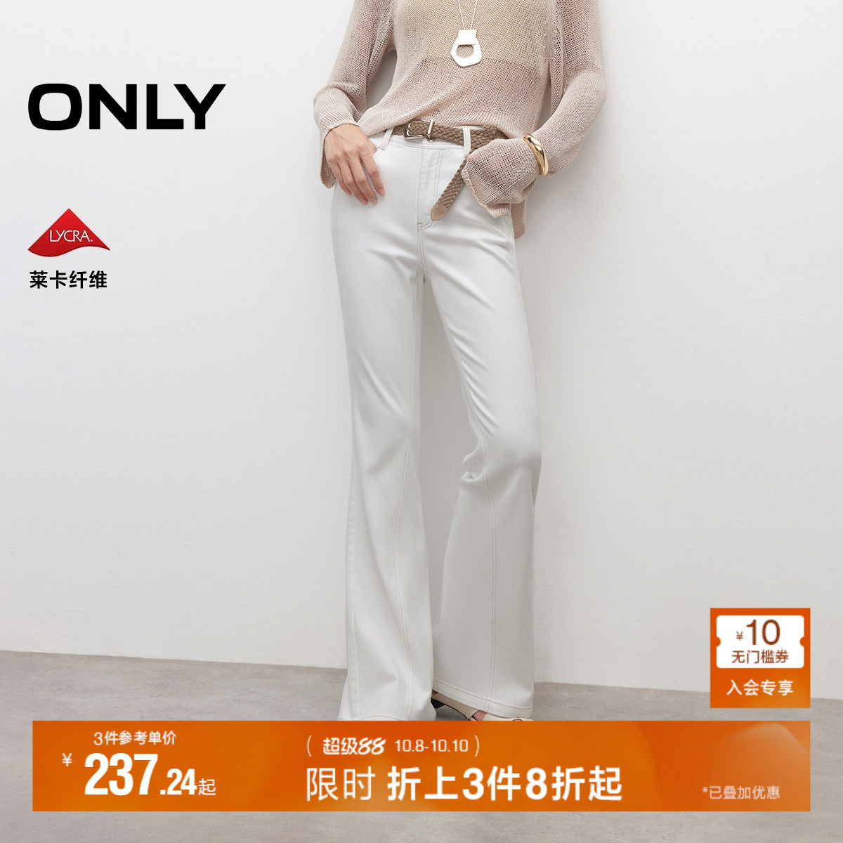 【小白裤】ONLY2025秋季新款莱卡显瘦高腰喇叭裤长裤白色牛仔裤女