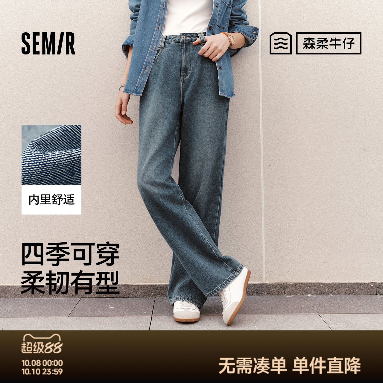 森柔牛仔|森马阔腿牛仔裤女2025夏季白色牛仔裤简约女士高腰裤子