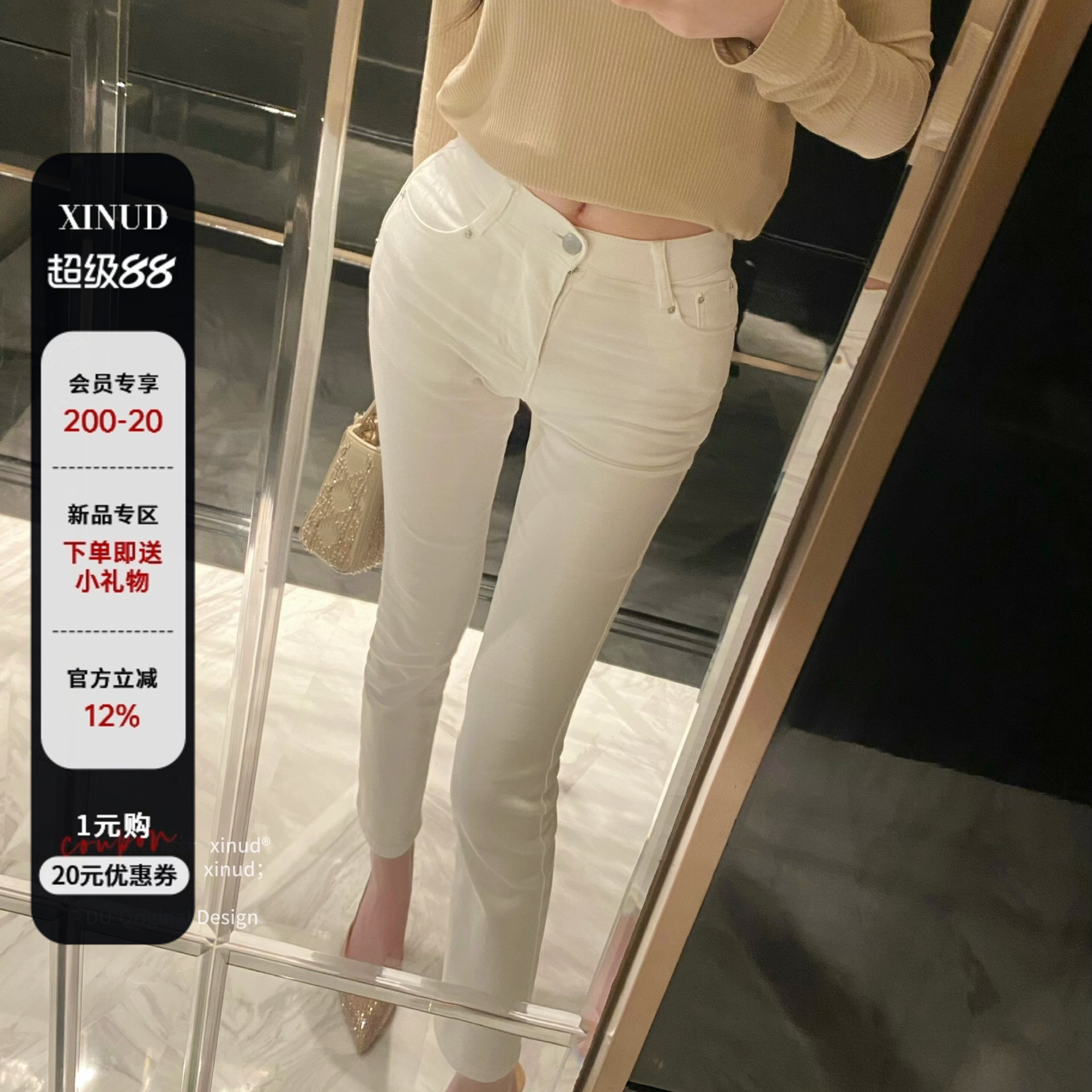 杜总家 魔法丰胯美腿裤*小白裤韩女显腿长窄版直筒百搭小脚牛仔裤