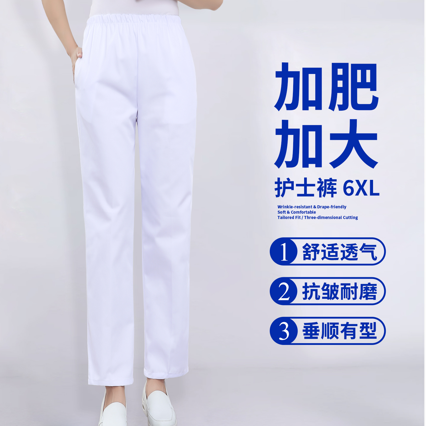 大码护士裤白色200斤松紧腰工作裤护士服白裤子女蓝色加大码加肥