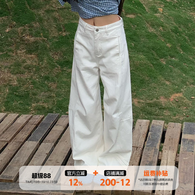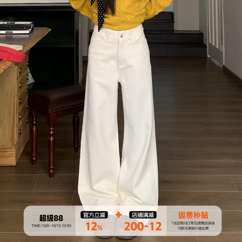 橘子树在哪儿复古高腰微喇白色牛仔裤女春秋垂感宽松直筒阔腿裤子