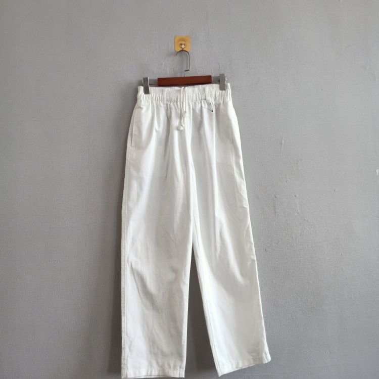 外贸秋季新款女装日单休闲多口袋松紧腰宽松直筒裤 女生小白裤F13