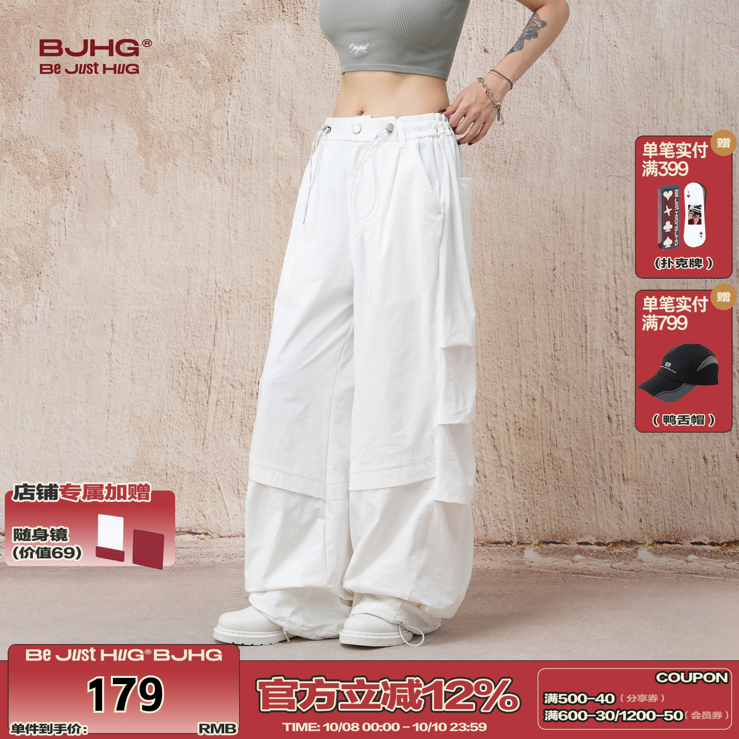 宋雨琦同款BJHG不计后果白色工装裤子男早秋轻薄三防运动伞兵裤女