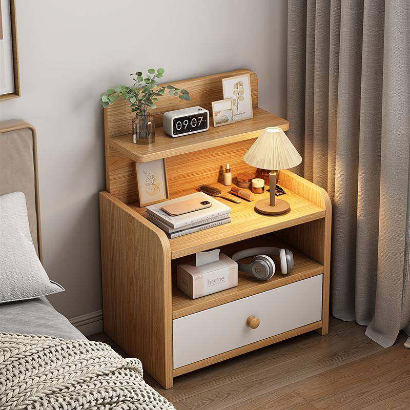 床头柜置物LSO架2约025新款小型家用卧边室实木床柜简收现代储物
