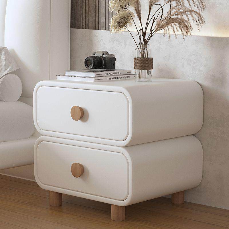 奶油极风床柜床头柜头卧室实木皮质床边柜约现代简简易免安装小型