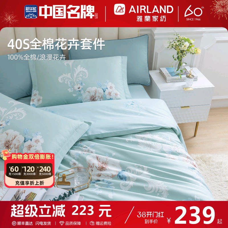 [新品四件套]全棉被套纯棉床单抗菌防螨家用高端轻奢床上用品套件