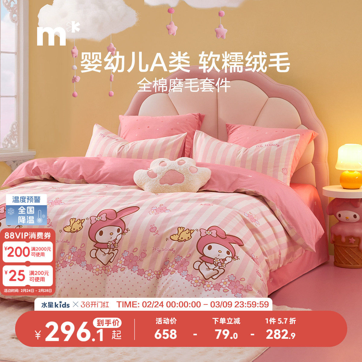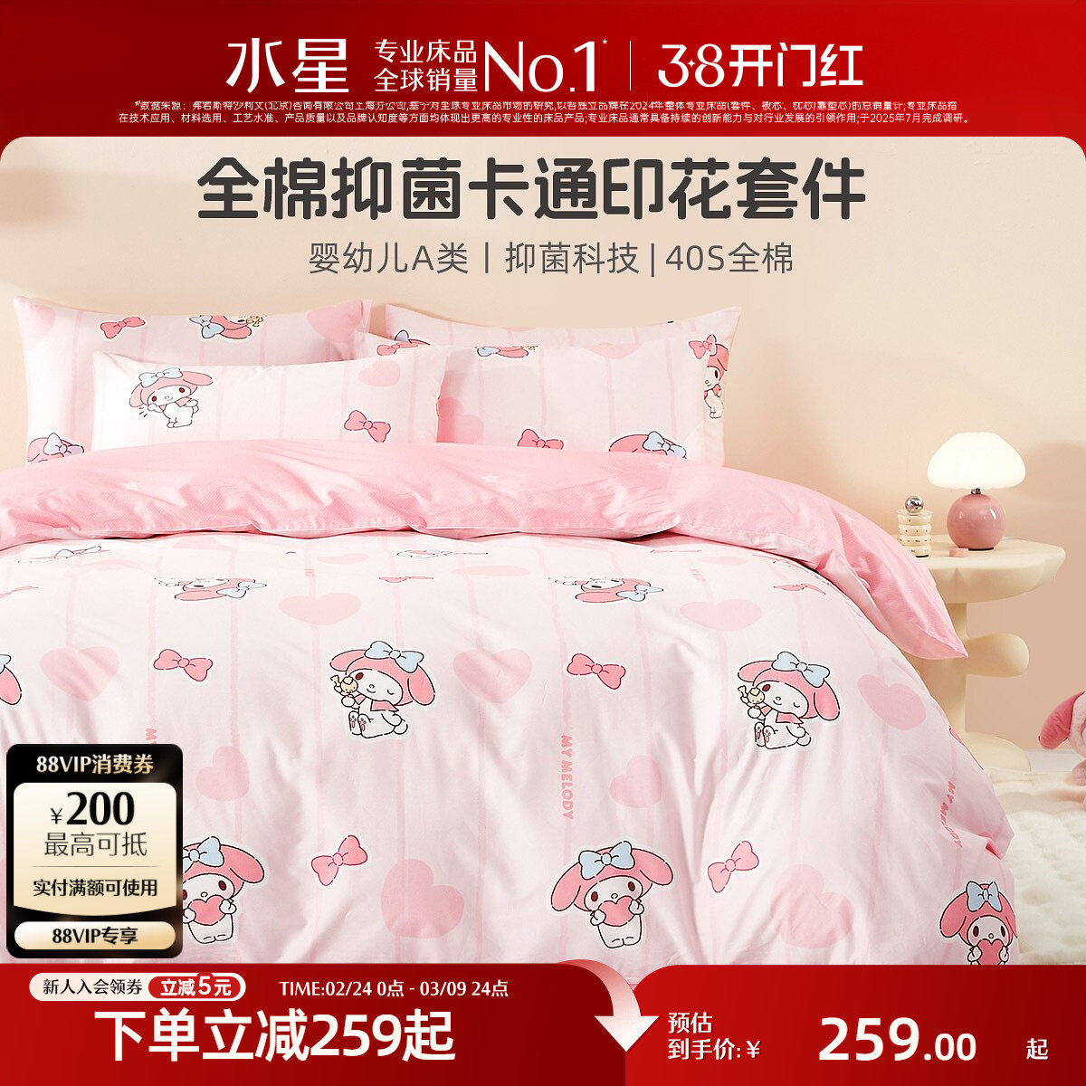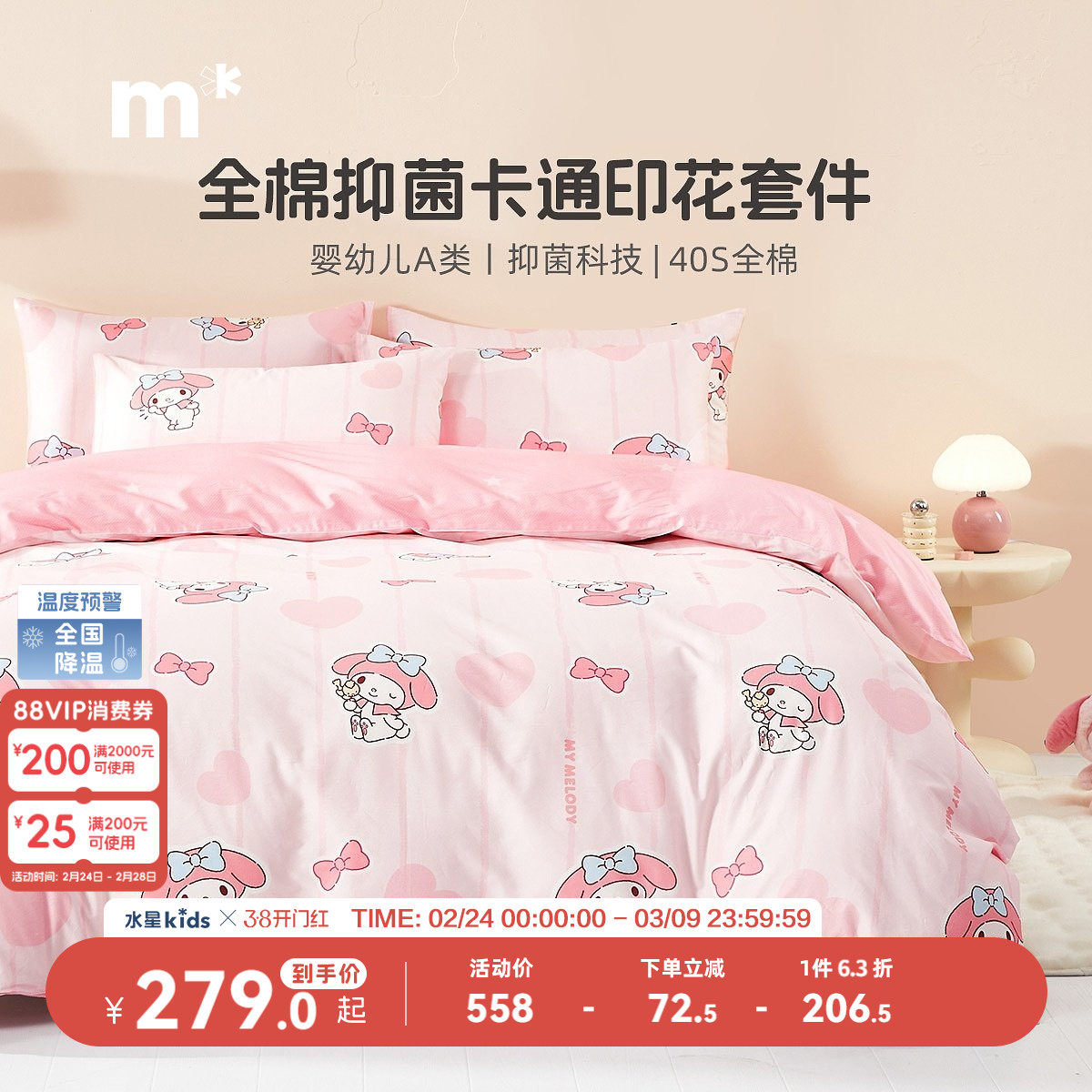 水星儿童纯棉套件全棉抗菌A类三四件套美乐蒂学生宿舍kitty女生粉