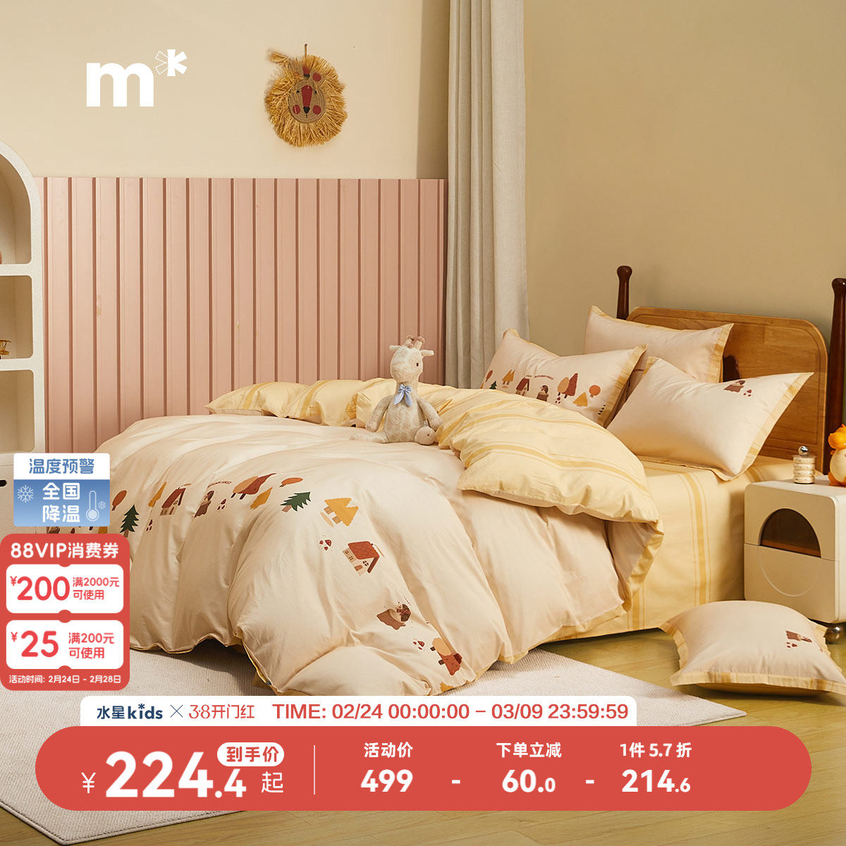 水星家纺儿童全棉三/四件套纯棉学生宿舍床笠被套床单美乐蒂套件