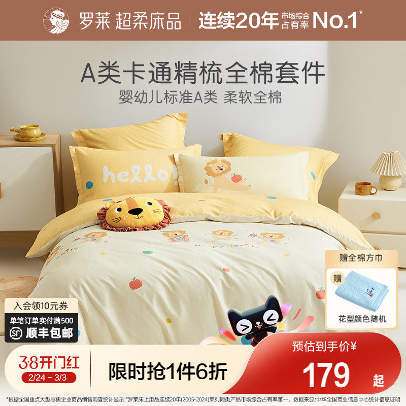 罗莱家纺全棉套件儿童宿舍100棉纯棉床单被套被罩床笠单人四件套
