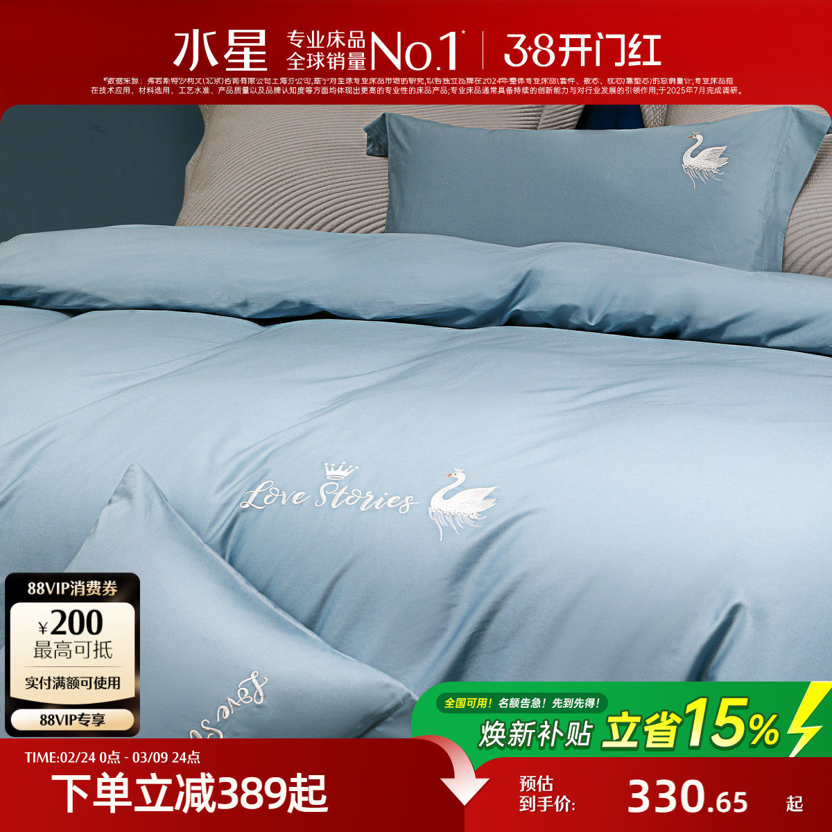 水星家纺60S长绒棉四件套全棉抗菌套件纯棉家用轻奢床单被罩床品