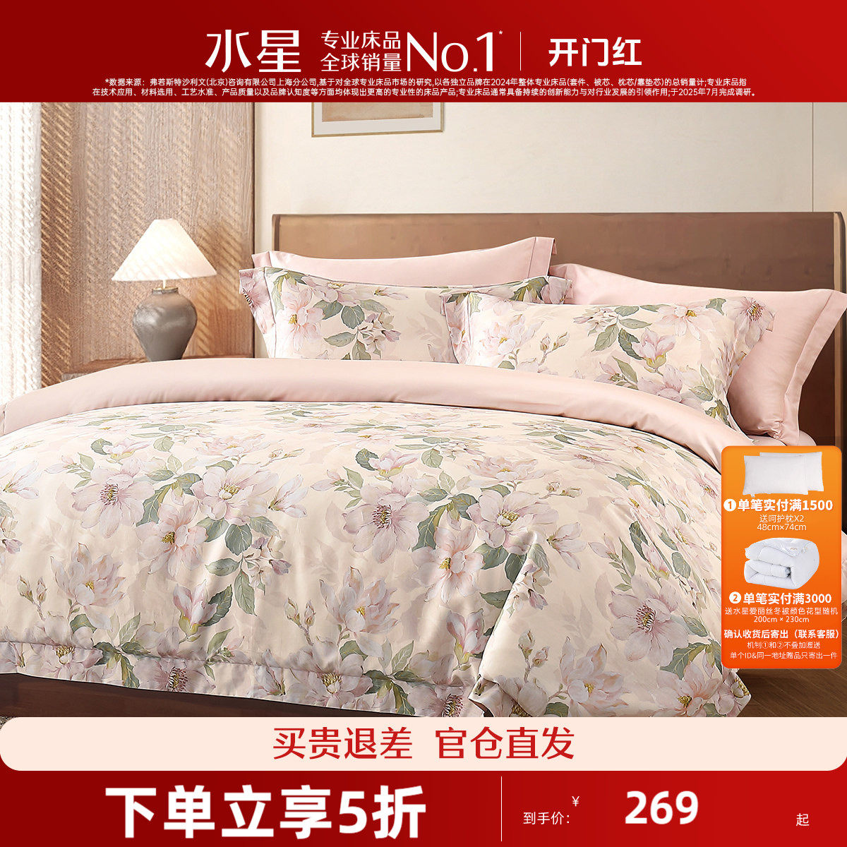 水星家纺全棉四件套纯棉套件花卉印花被套床单田园风床品26年新品