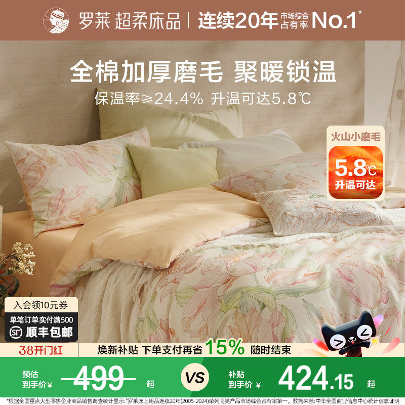 罗莱家纺LOVO乐蜗全棉加厚磨毛四件套纯棉保暖被套床单学生三件套