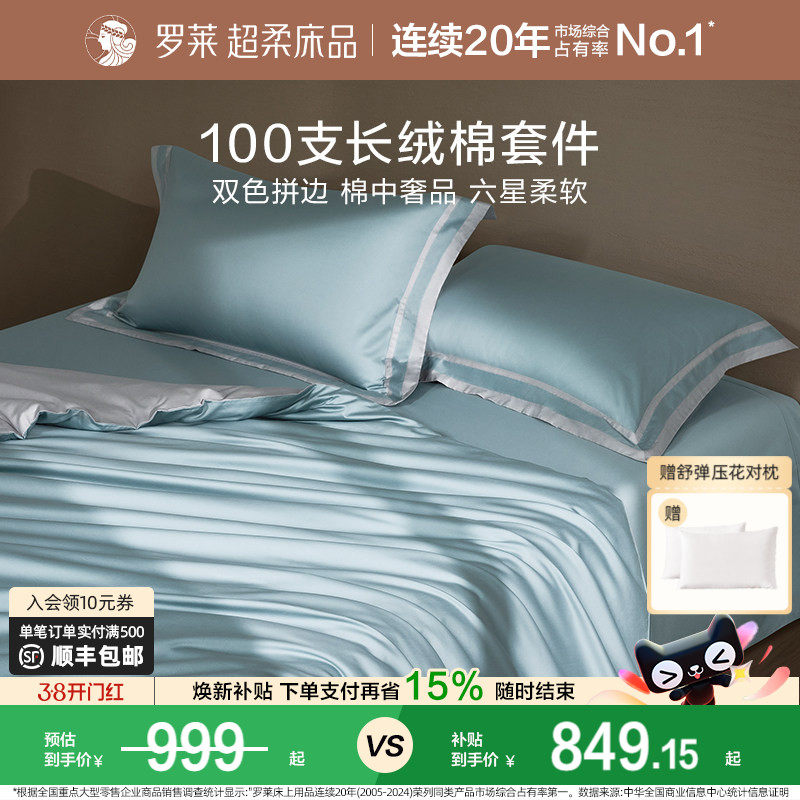 罗莱家纺高端100支长绒棉四件套纯棉全棉被套床单1.8m双人床套件