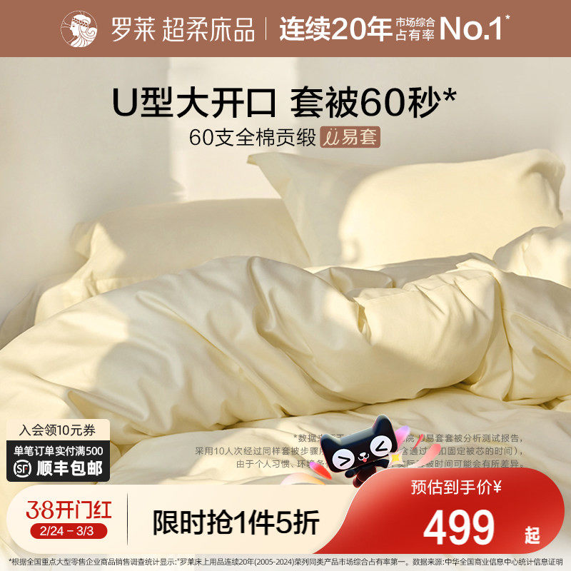 罗莱家纺U易套60支贡缎纯棉全棉套件超柔被套床单四件套100%棉