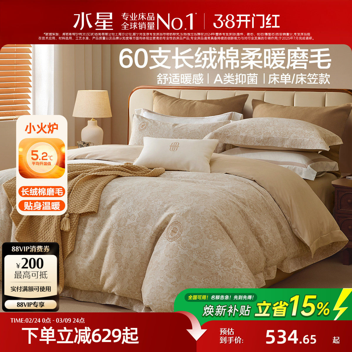 水星家纺全棉磨毛四件套纯棉抗菌套件四季床上用品秋冬天床单被套