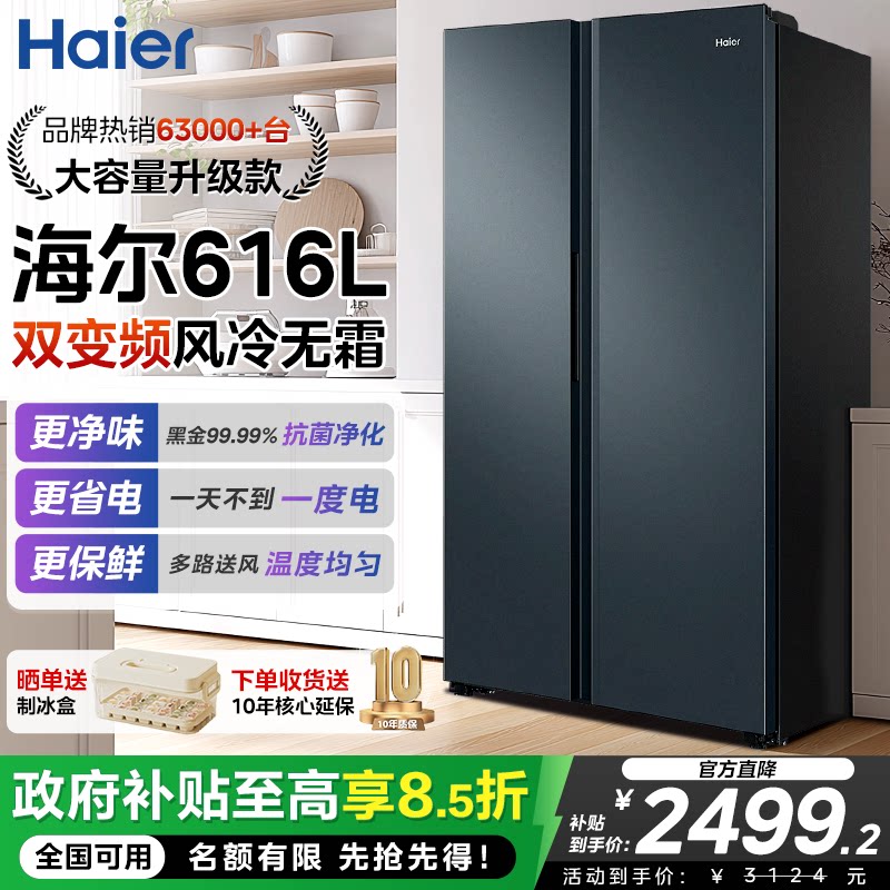 【补货链接】政府换新补贴海尔616L大容量双开门冰箱全民可用