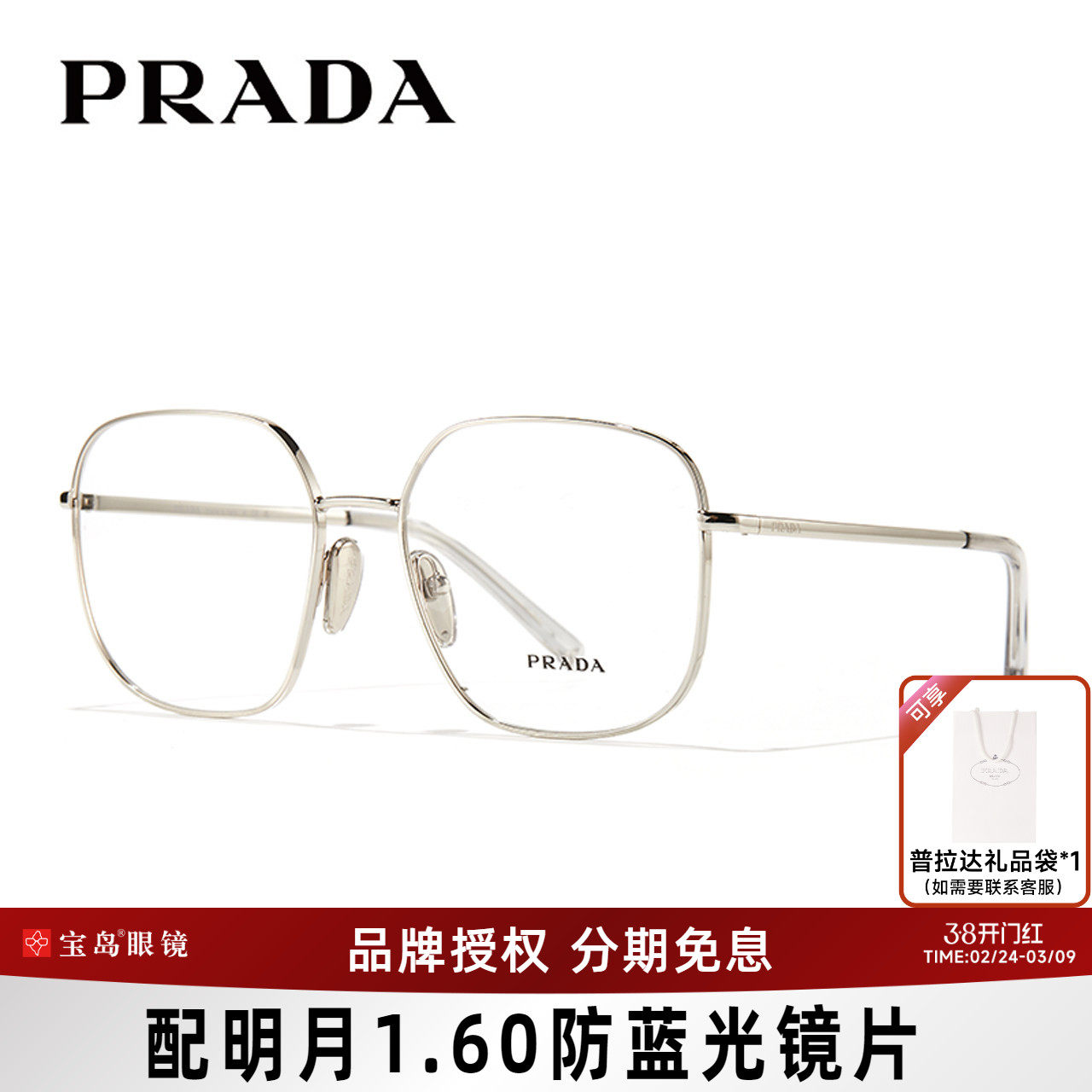 Prada普拉达眼镜框金属方框女时尚潮大框眼镜架可配带度数镜A59V