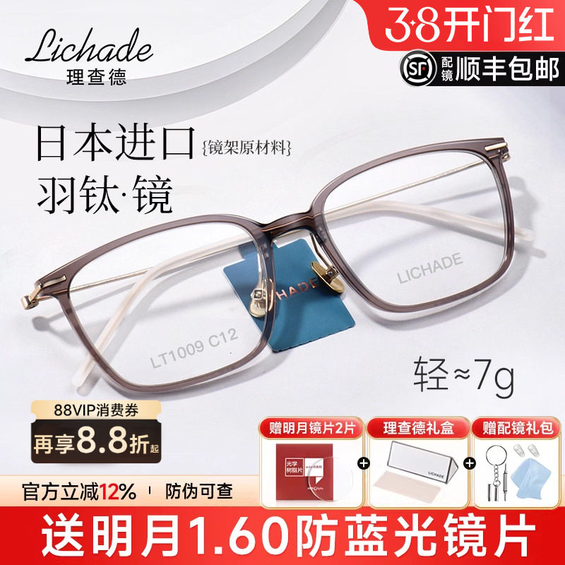 理查德日本进口钛材羽钛7克近视眼镜框男女大框眼镜架配镜LT1009