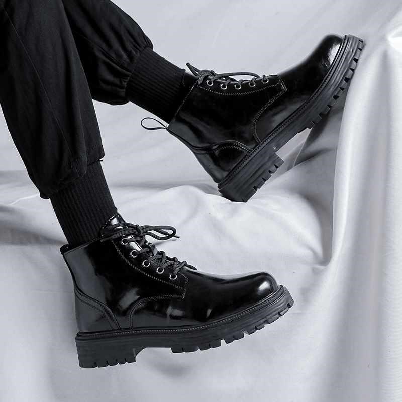 马丁靴男款低帮秋季英伦风高帮厚底男生皮鞋漆皮黑色中帮短筒爆款