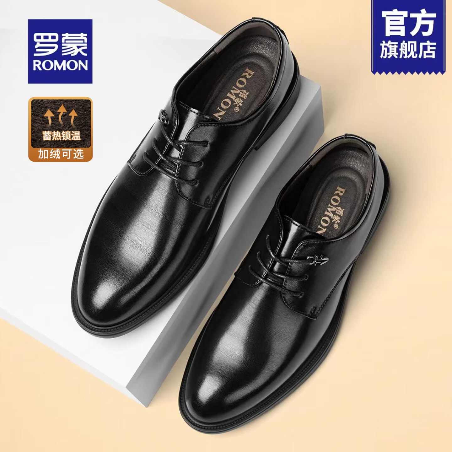 罗蒙皮鞋男新款冬季真皮正装商务德比鞋男生增高软底结婚新郎鞋RM