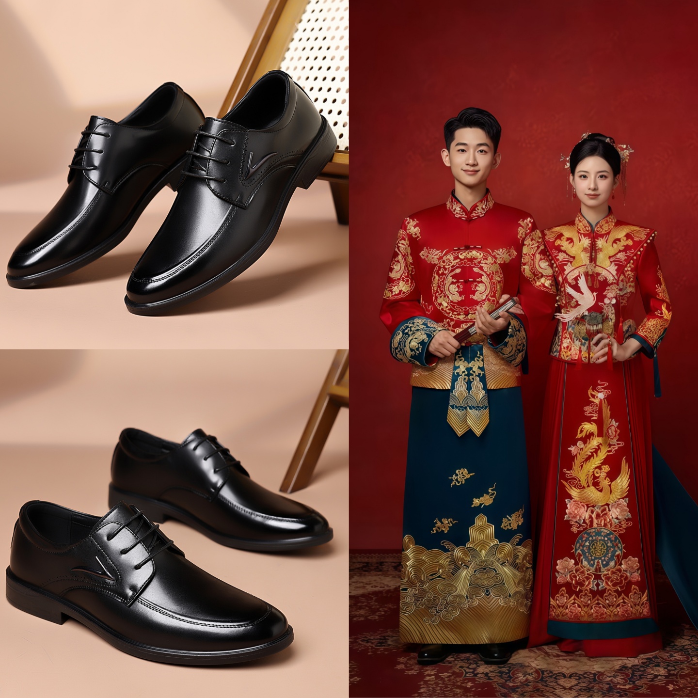 新中式国风新郎结婚订婚礼搭配秀禾服男装鞋子青年中山装男生皮鞋
