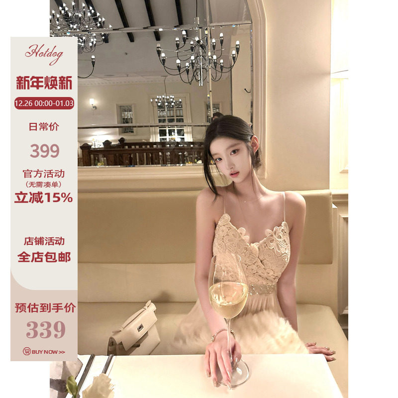 Hotdog 热狗很辣【琥珀琉光 古早钉珠长裙】女人味蕾丝吊带连衣裙