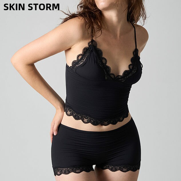 SKIN STORM蕾丝V领吊带SKIMS上衣内搭卡戴珊睡衣内衣背心短裤套装