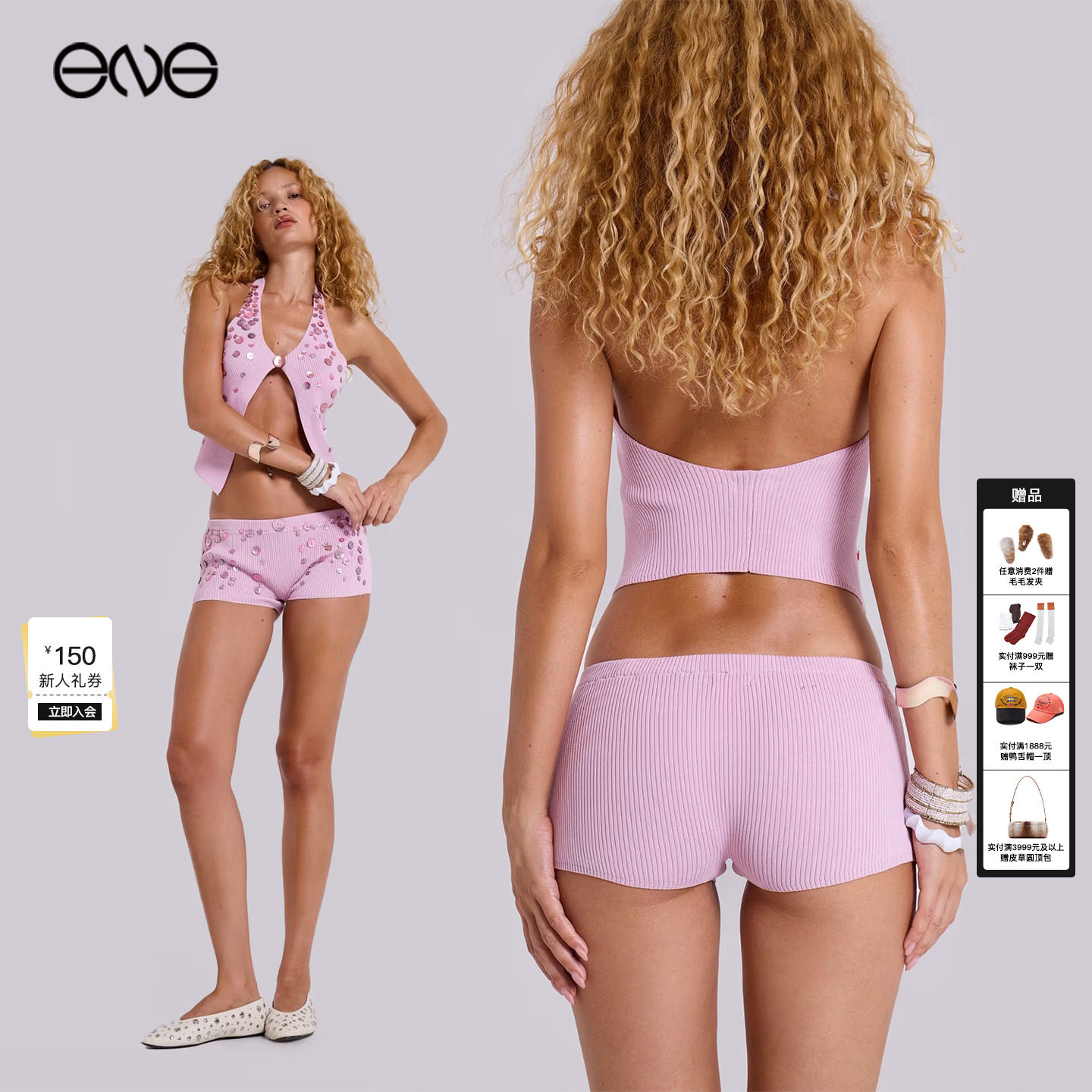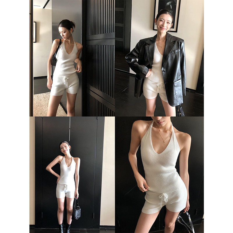 辰米范 摩登实力派 气质挂脖露背针织吊带背心女复古显瘦短裤套装
