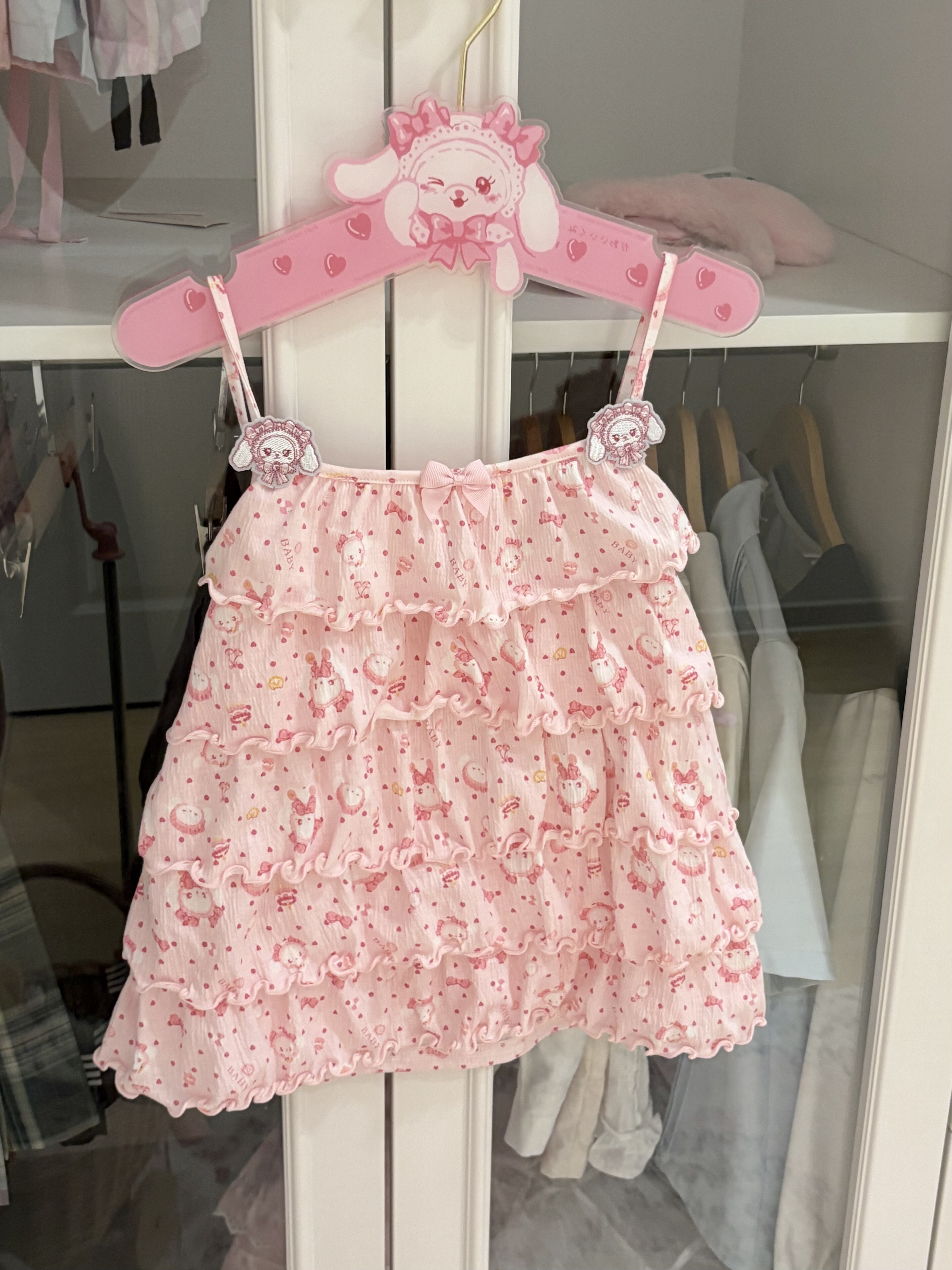 【小软摘星星】现货48小时发兔熊吊带可爱皱布棉 前200送短裤