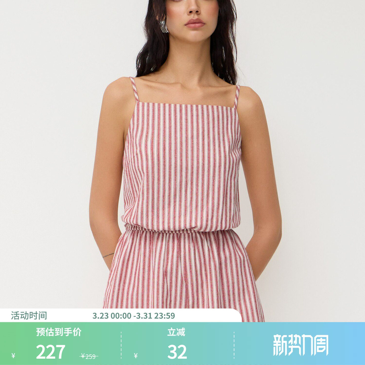 CIDER夏季女装棉方领条纹松紧腰吊带连身短裤114643047