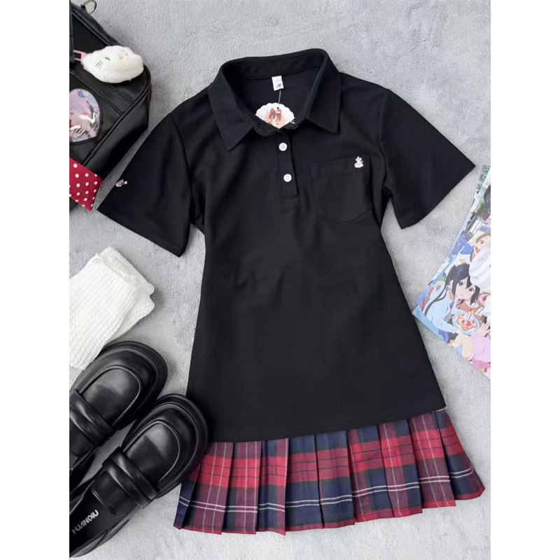 狗皮皮JK小谷基础款收腰POLO衫女学院风校供运动休闲学生短袖上衣