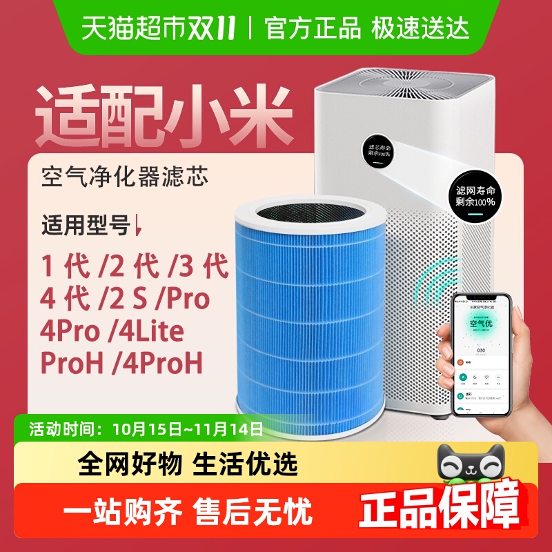 适配小米空气净化器滤芯4lite过滤网1代/2代/2S/3代/Pro H/4代Max