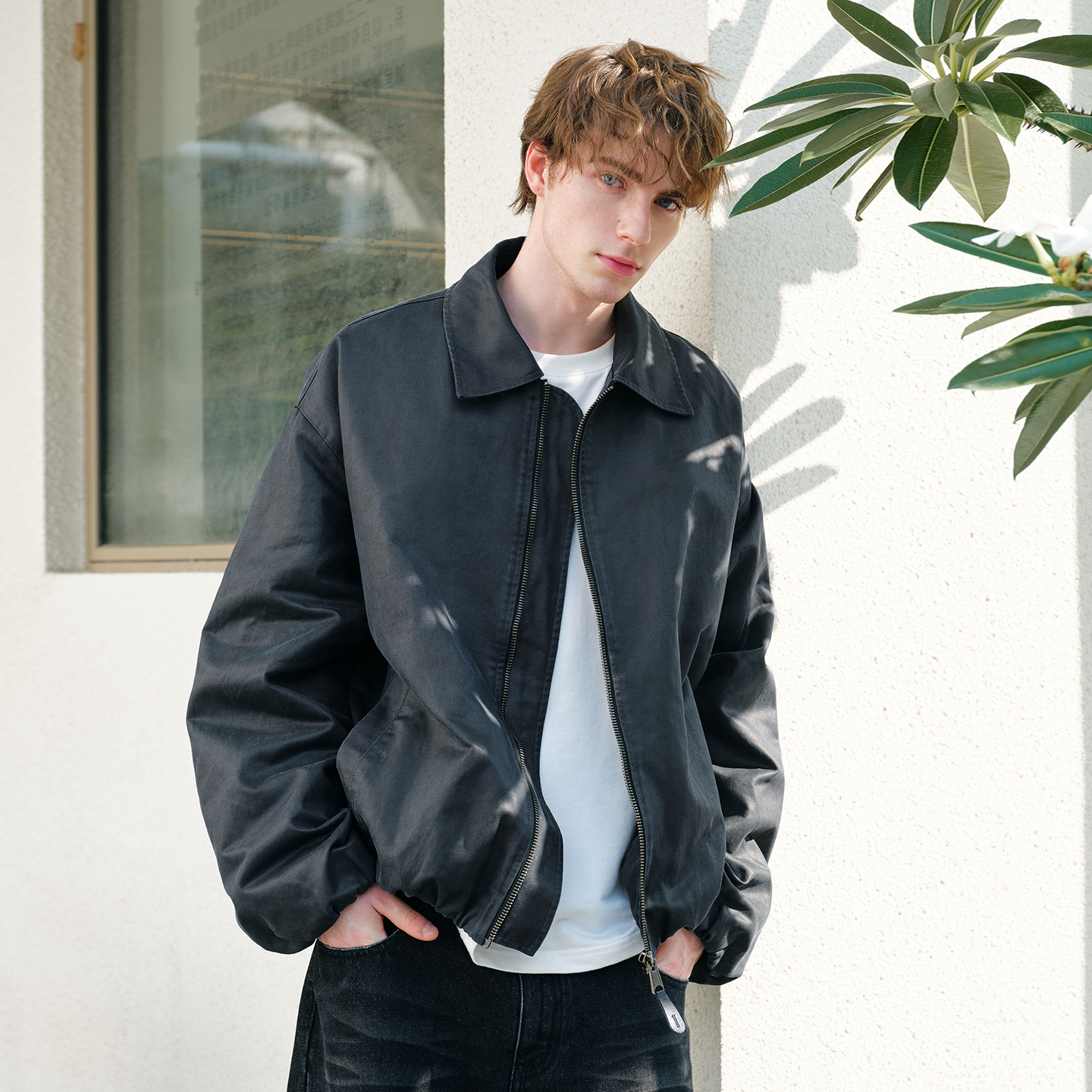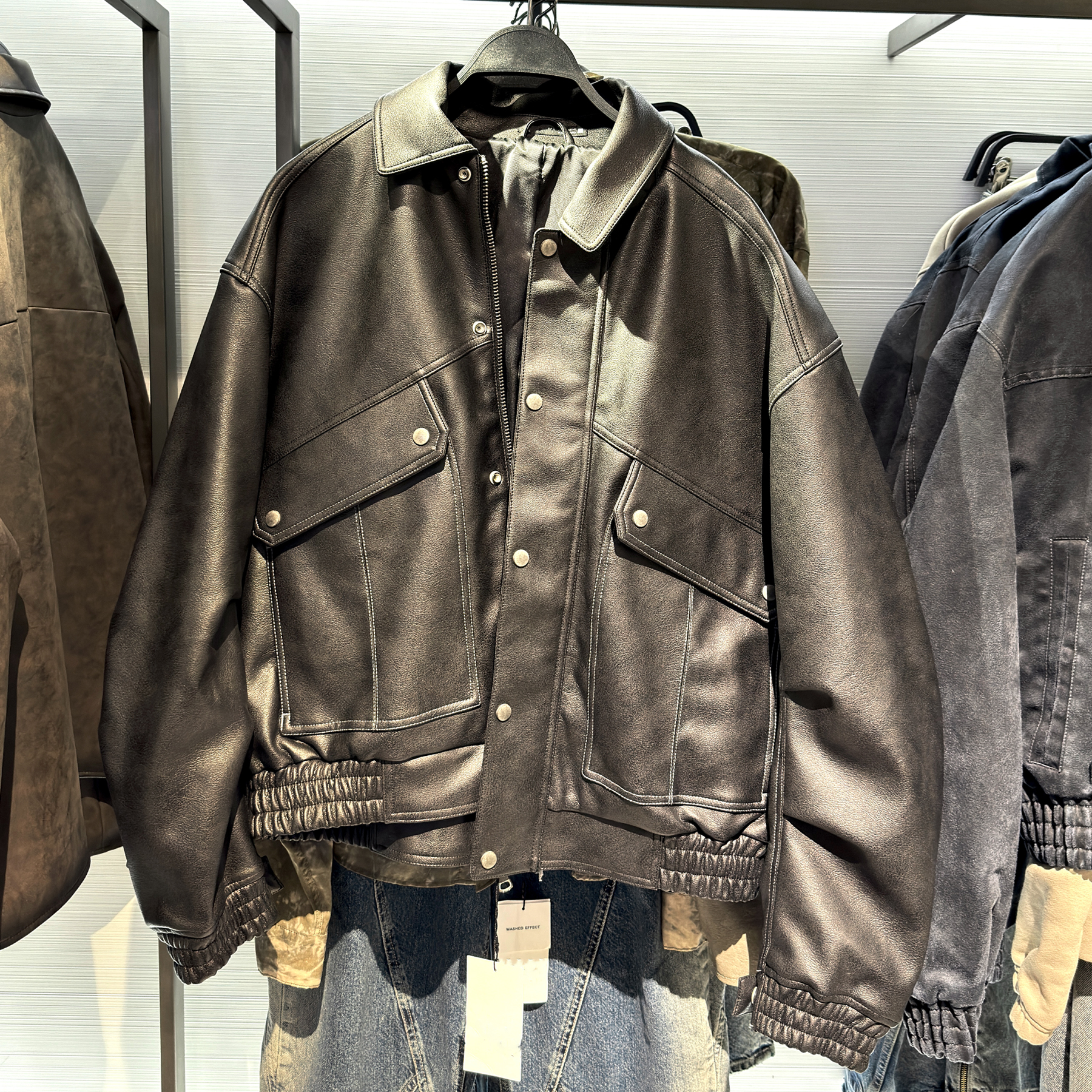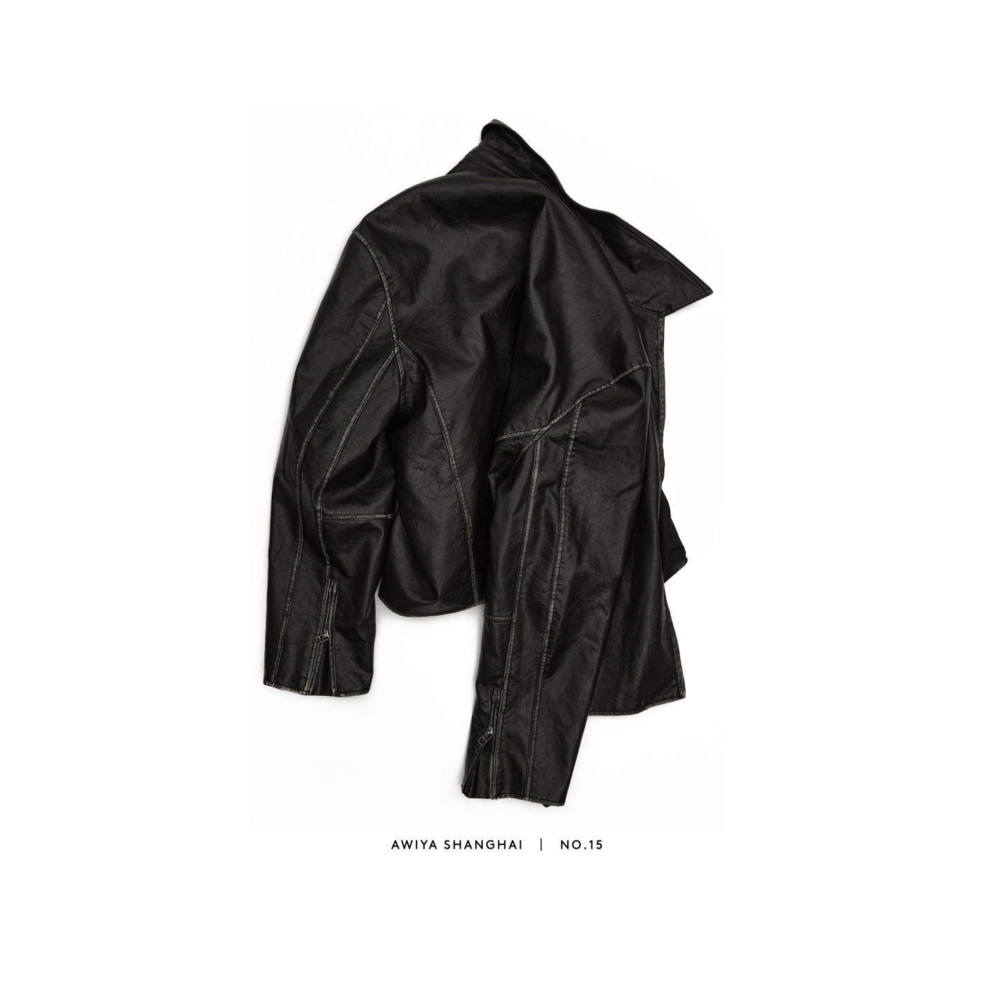 awiya shanghai No.15 水洗做旧拉链皮衣boxy版型短宽外套