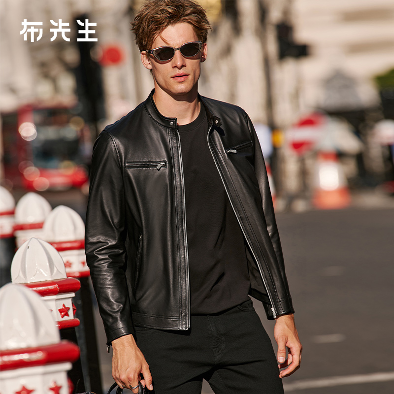 MrBu布先生机车风翻领拉链皮衣2025秋冬新款纯羊皮外套男BT16986