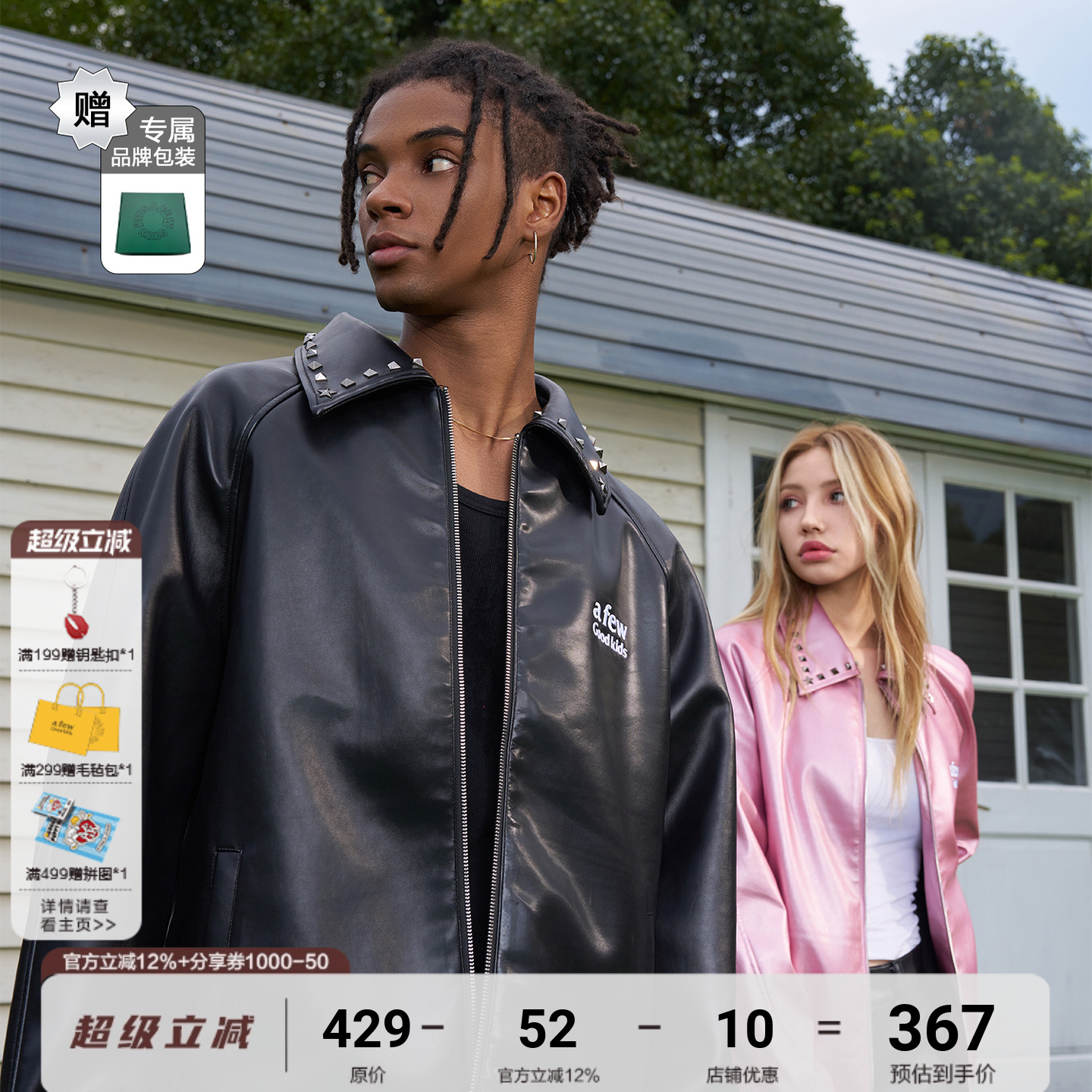 AFGK24FW 重磅定制PU亮面铆钉拉链皮衣男女潮牌春秋夹克外套上衣
