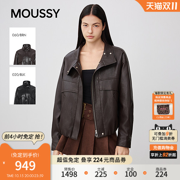 【双11预售】MOUSSY 秋季新品潮酷时尚简约拉链皮衣外套女