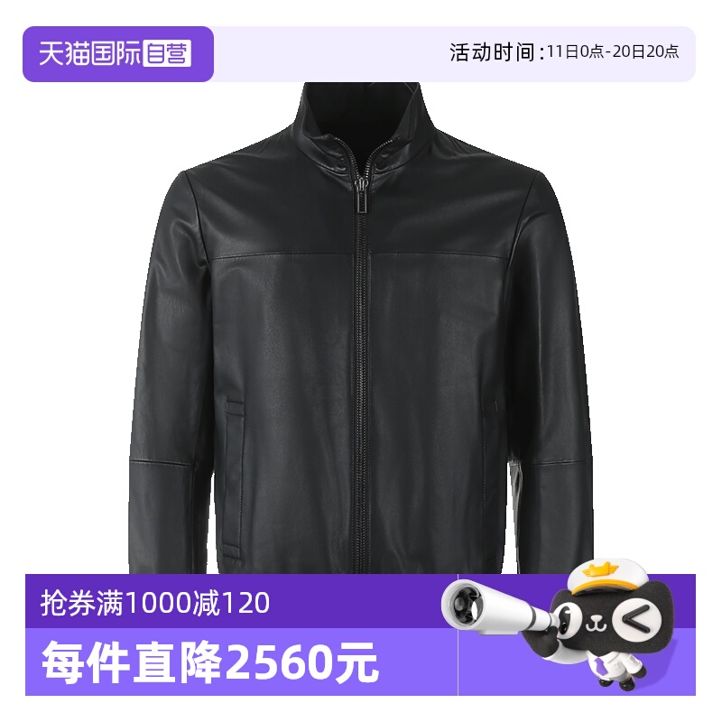 【自营】EA阿玛尼男士羊皮革立领拉链皮衣夹克外套 01R55P 01P54