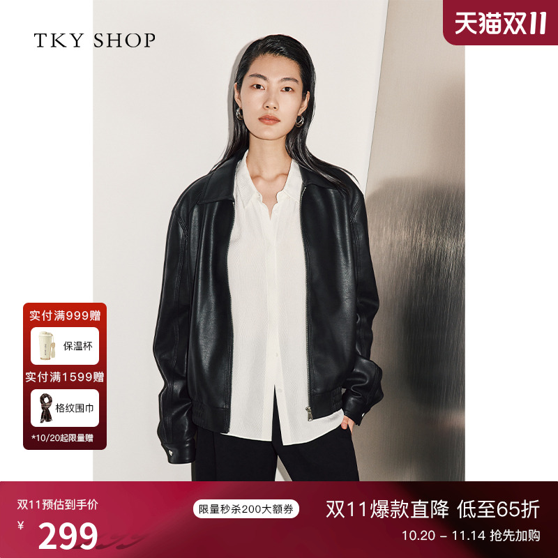 TKY SHOP宽松休闲拉链皮衣外套女2025春秋新款黑色百搭炸街上衣