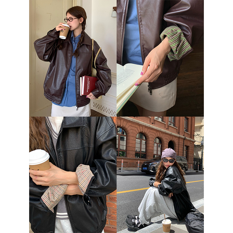 RPB BRAND高级感韩系新款复古皮衣外套女短款休闲拉链夹克上衣
