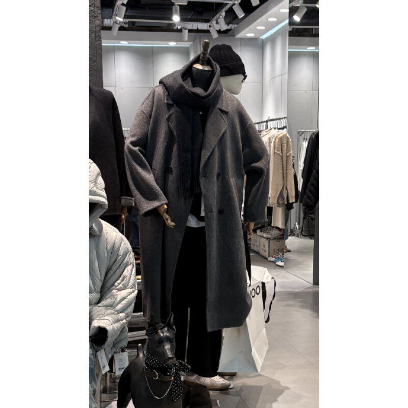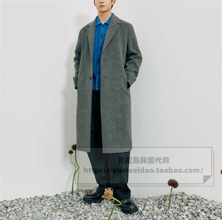 韩国东大门男装秋冬过膝大衣男士极简高级灰韩版双面呢外套中长款