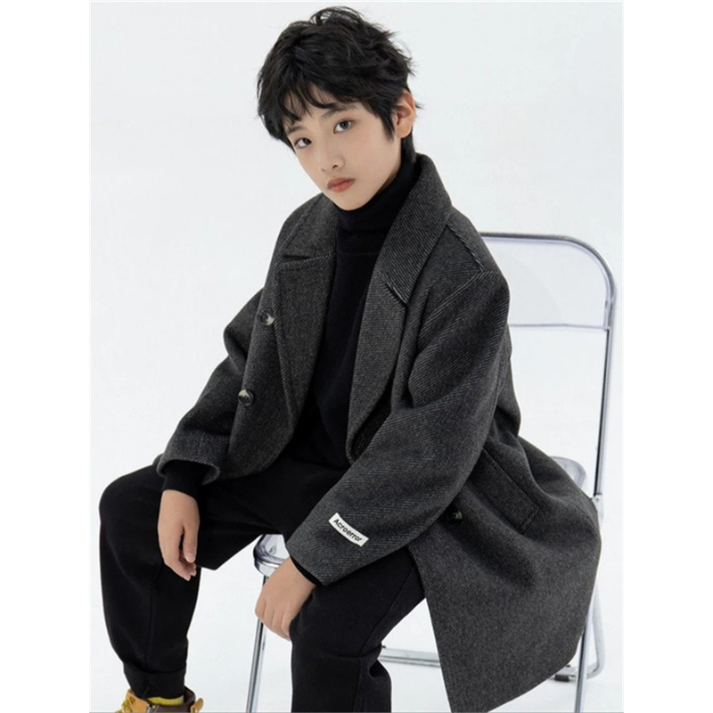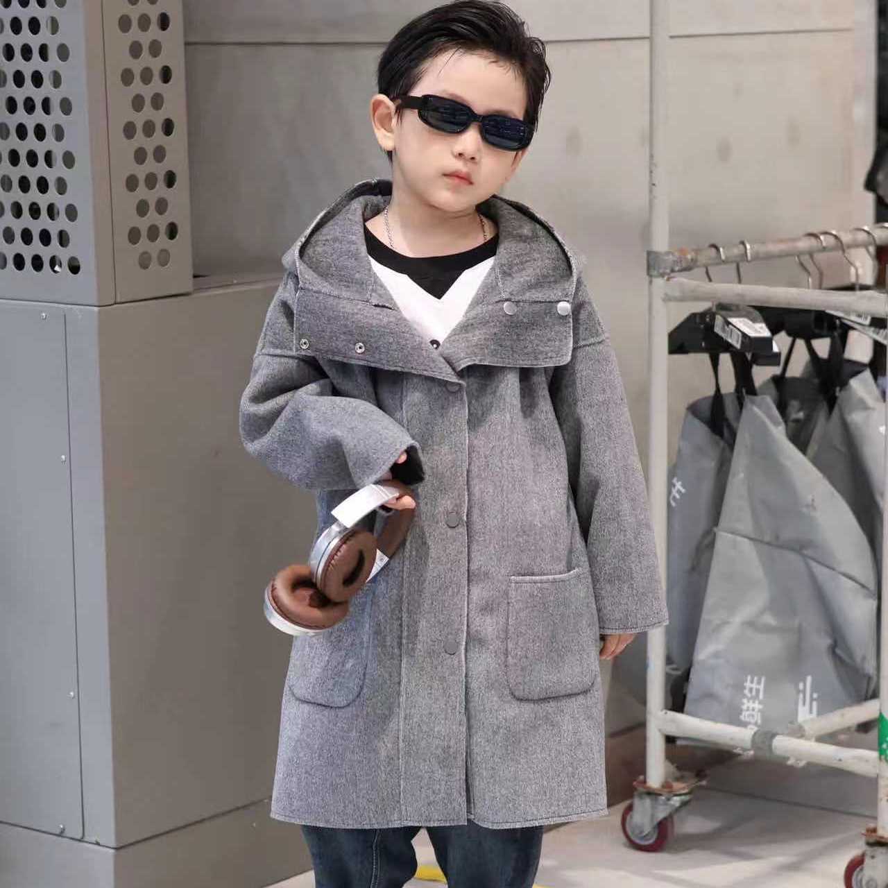 男童毛呢外套洋气大衣韩国男孩妮子秋冬中长款儿童尼子中大童呢子