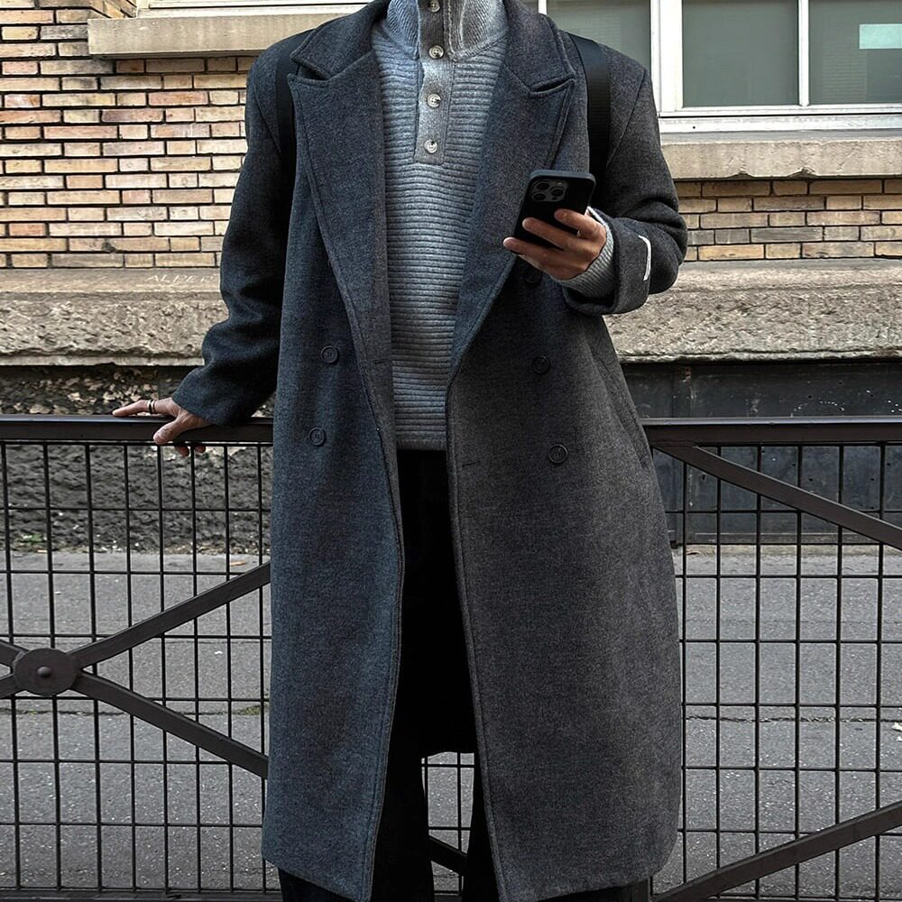 - 双排扣呢子大衣男