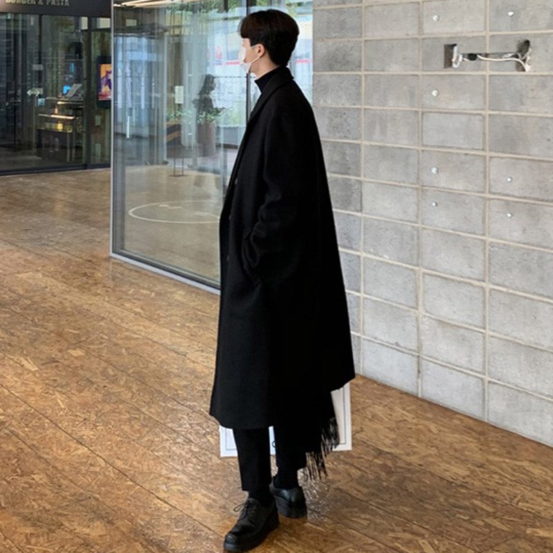 【香港·都市雅集】韩国翻领风衣男士秋冬中长款过膝毛呢大衣外套