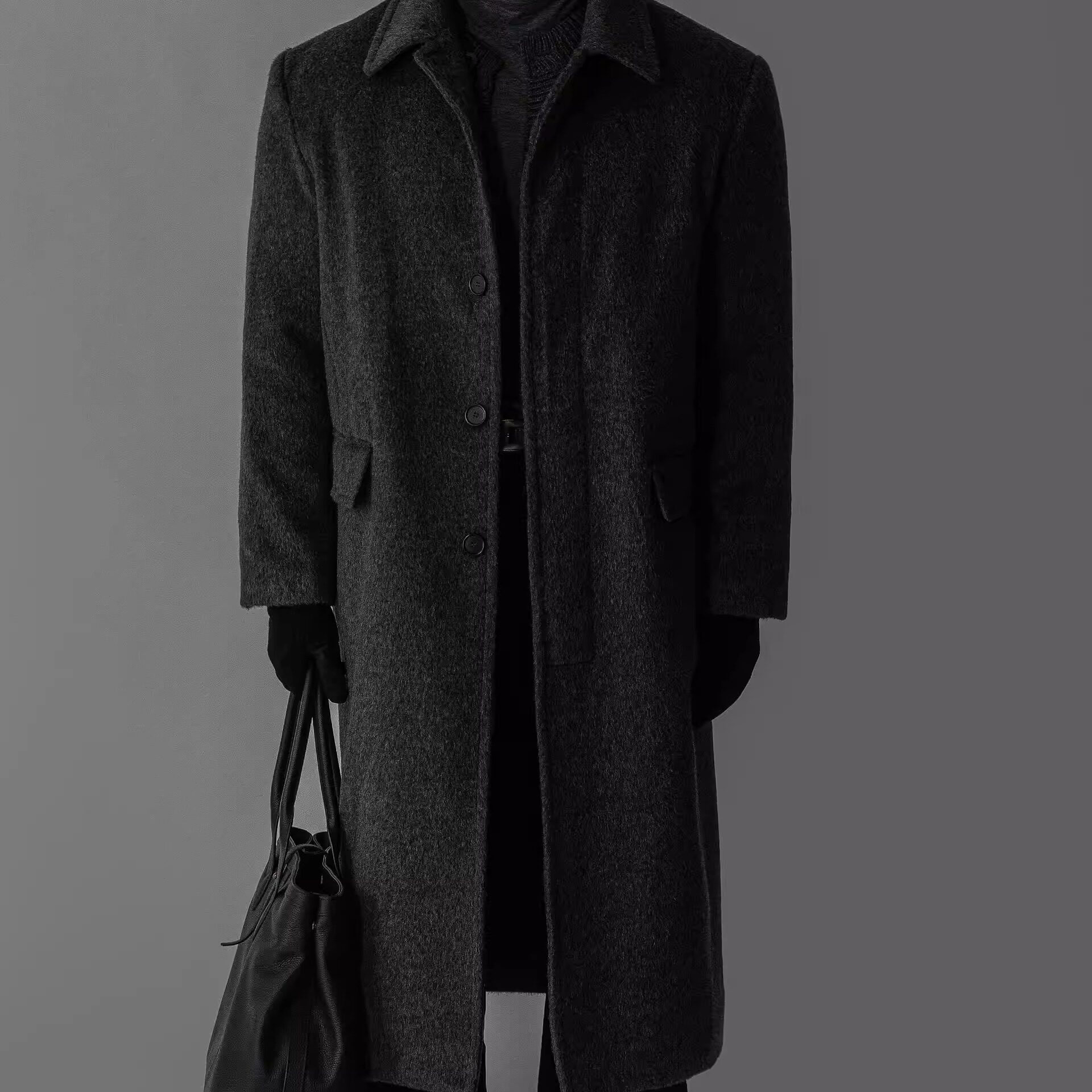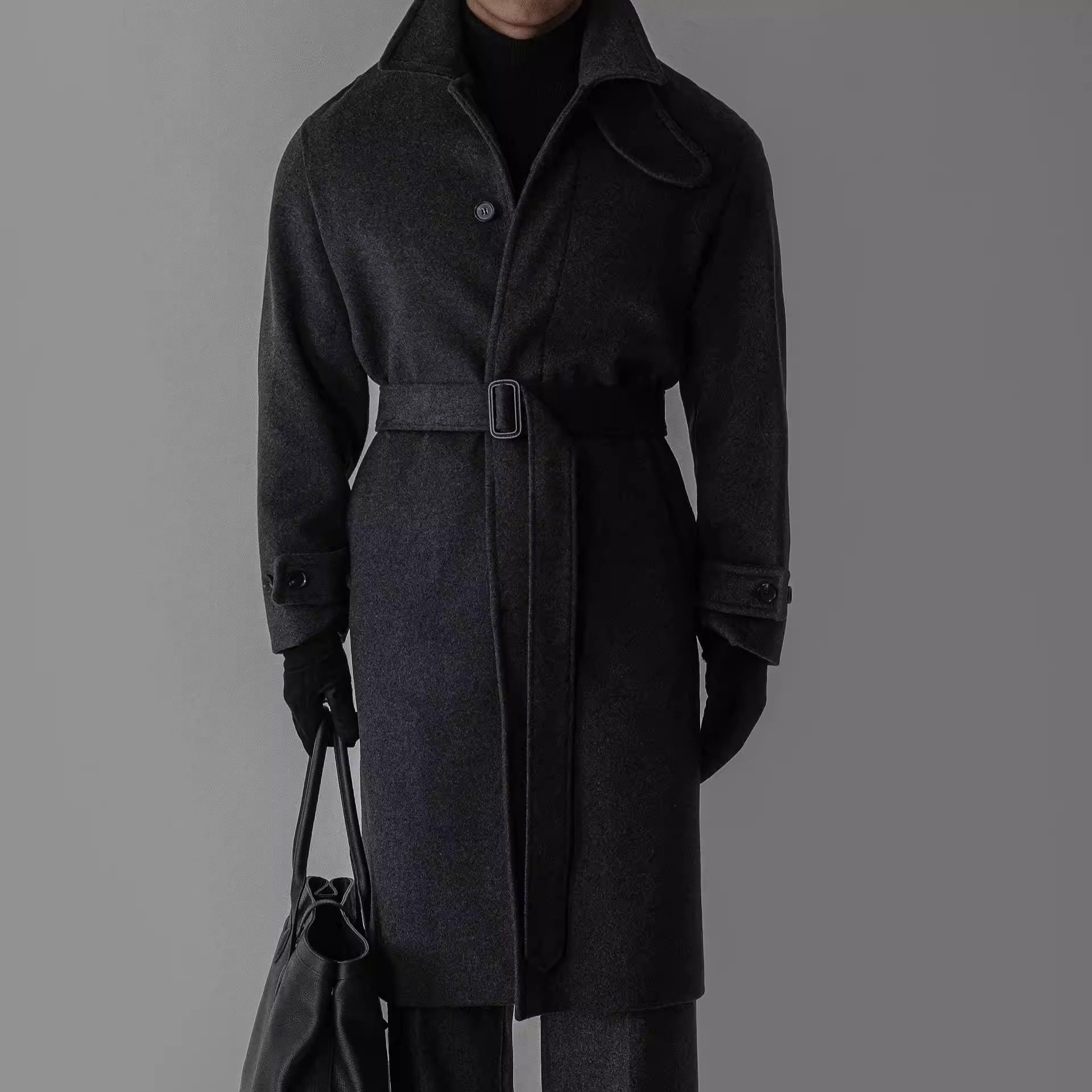 - 毛呢大衣超长款男