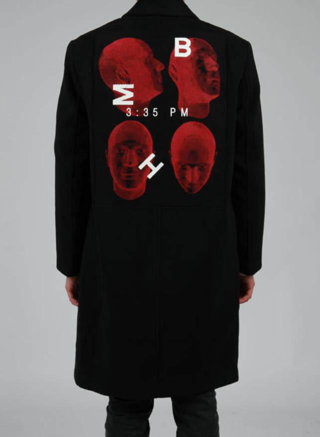 现YUNO韩国正品进口 冬季嘻哈说唱潮中长款人脸毛呢大衣外套男士