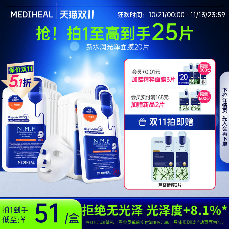 韩国Mediheal美迪惠尔可莱丝NMF针剂水库保湿面膜 锁水亮白正品女