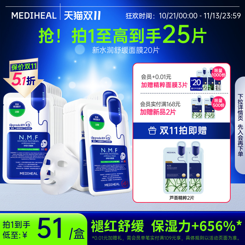 韩国mediheal美迪惠尔面膜水库舒缓补水NMF可莱丝春夏修护玻尿酸