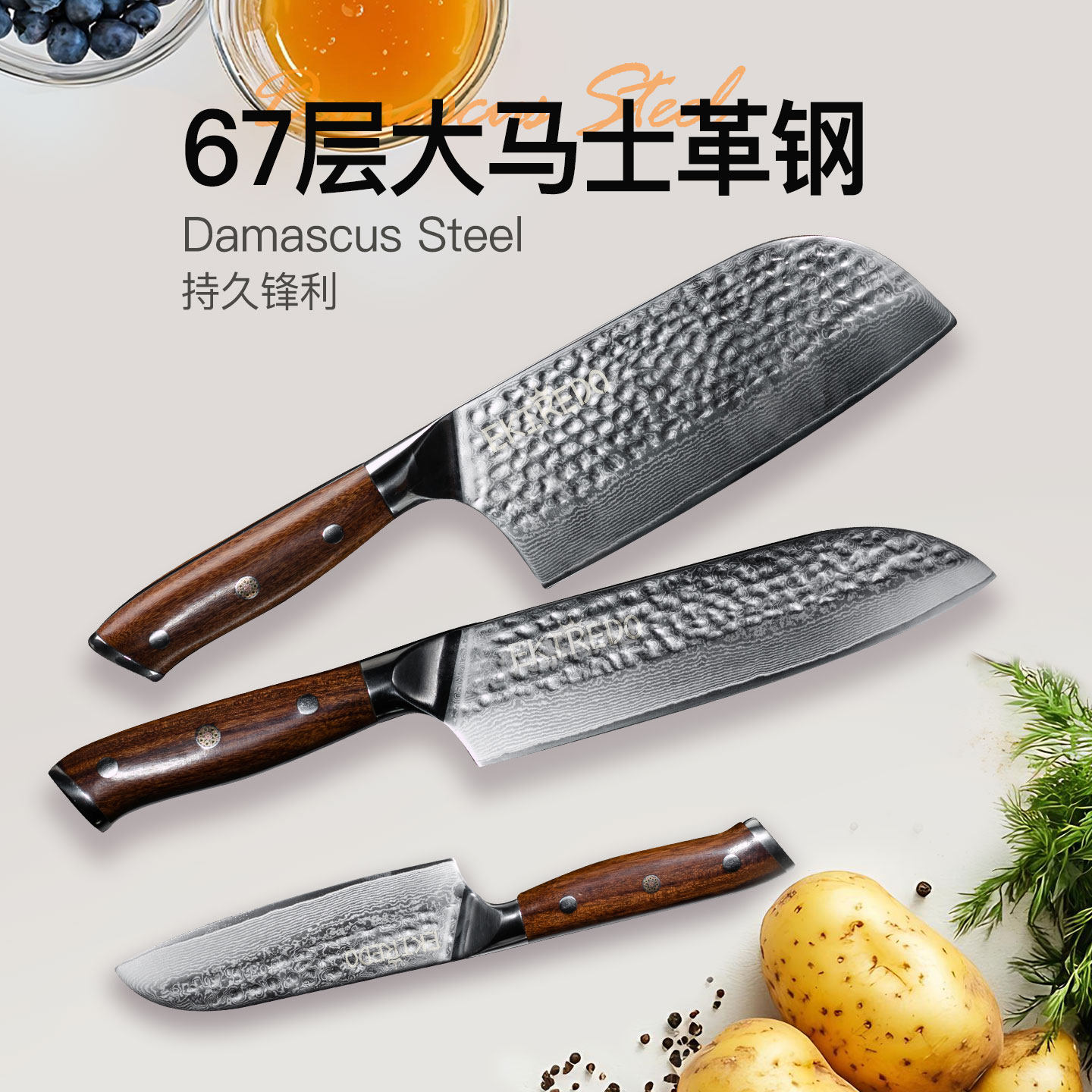 EKIREDO怡可得大马士革菜刀厨房刀切片三德刀锤纹厨房家用女刀具